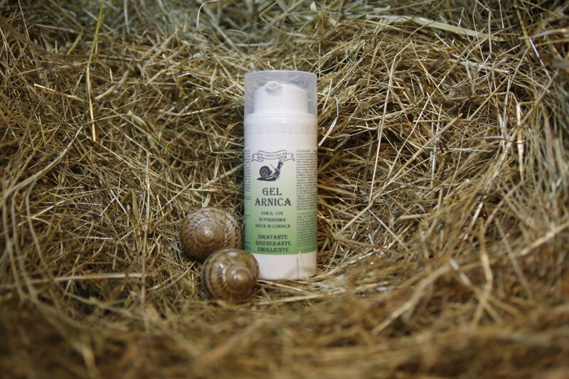 Gel arnica e bava di lumaca al 10% per il trattamento dei dolori muscolari.